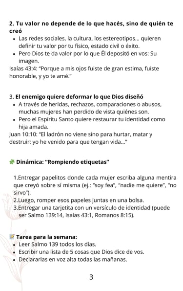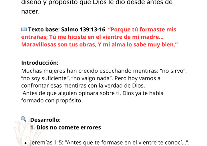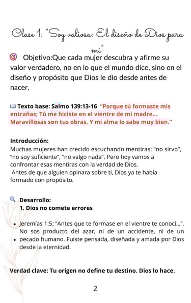 Clase 1: Tu verdadero valor Descubrí que sos amada, diseñada por Dios y creada con propósito.