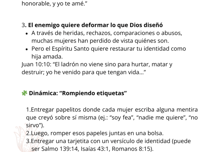 Estas enseñanzas ayudan a las mujeres a descubrir su valor, sanar heridas de rechazo y afirmar su identidad como hijas del Rey.